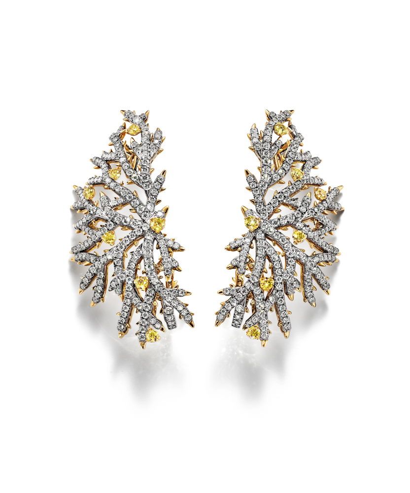 The Coral theme is defined by exuberant hues and features an array of designs showcasing tanzanites, sapphires and yellow diamonds. Ethereal and luminescent, a striking brooch from the Jellyfish theme echoes the graceful movement of a jellyfish’s tentacles.