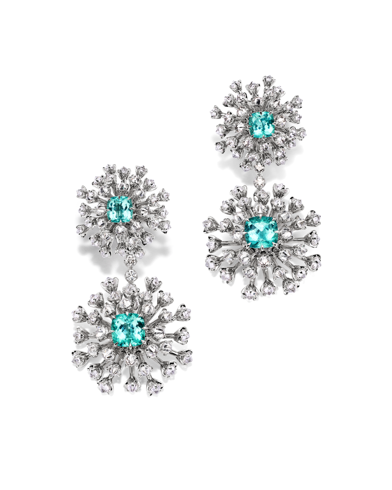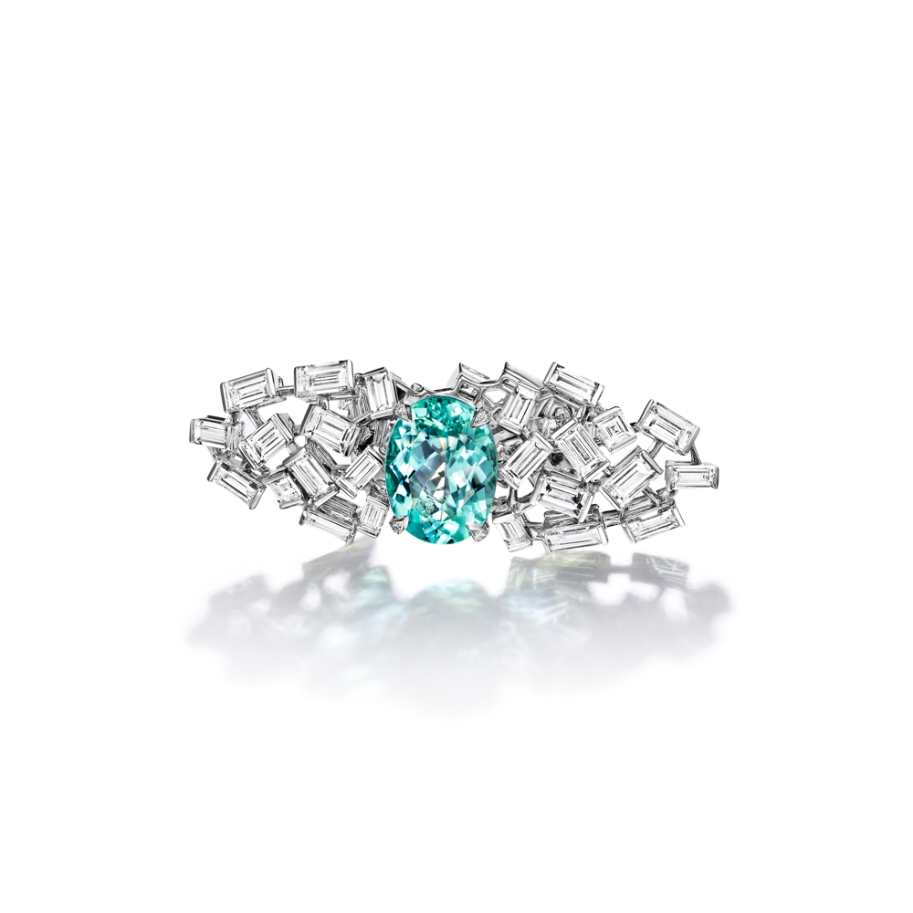 Souvent décrite comme la fleur de la mer, le thème de l'anémone de mer rend hommage à la dextérité des formes de cette créature. Cette nouveauté de la collection Blue Book 2023 : Out of the Blue présente des mécanismes de conception très innovants tels qu'un bracelet contenant des diamants, des tourmalines bleues cupriques elbaïtes et des turquoises serties en tremblant - donnant une impression de mouvement subtil. D'autres créations sont conçues avec un sertissage inversé composé de diamants dont les culets sont tournés vers l'extérieur, donnant une texture hérissée, magnifiant le thème de l'anémone de mer.