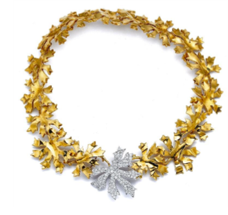 LOS ANGELES, CALIFORNIA – September 30, 2024. Tiffany & Co. is pleased to announce that Lady Gaga wore a Jean Schlumberger by Tiffany Vigne necklace, black enamel bracelet, and banana dot ear clips to the LA premiere of "Joker Folie à Deux" on Monday, September 30, 2024, in Los Angeles, California.