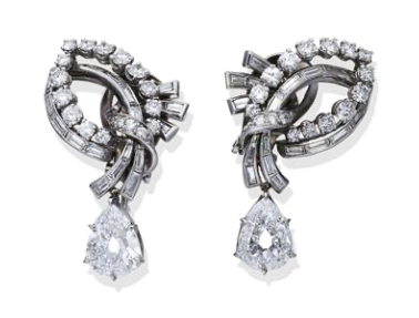 Diane Lane wore a pendant in platinum with a pink tourmaline and diamonds, diamond stud earrings and Jean Schlumberger by Tiffany ribbon earrings, and rings.